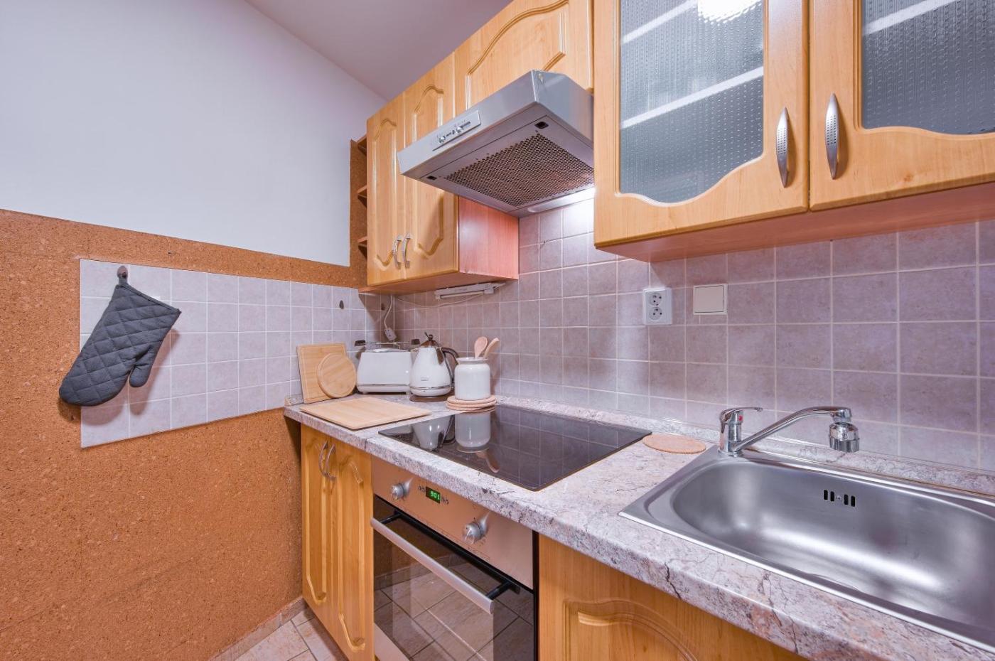 One-Bedroom Apartment. In the kitchen, guests will find a stovetop, a refrigerator, kitchenware and an oven. The apartment features a washing machine, a tea and coffee maker, a seating area, a wardrobe and a flat-screen TV. The unit has 1 bed.