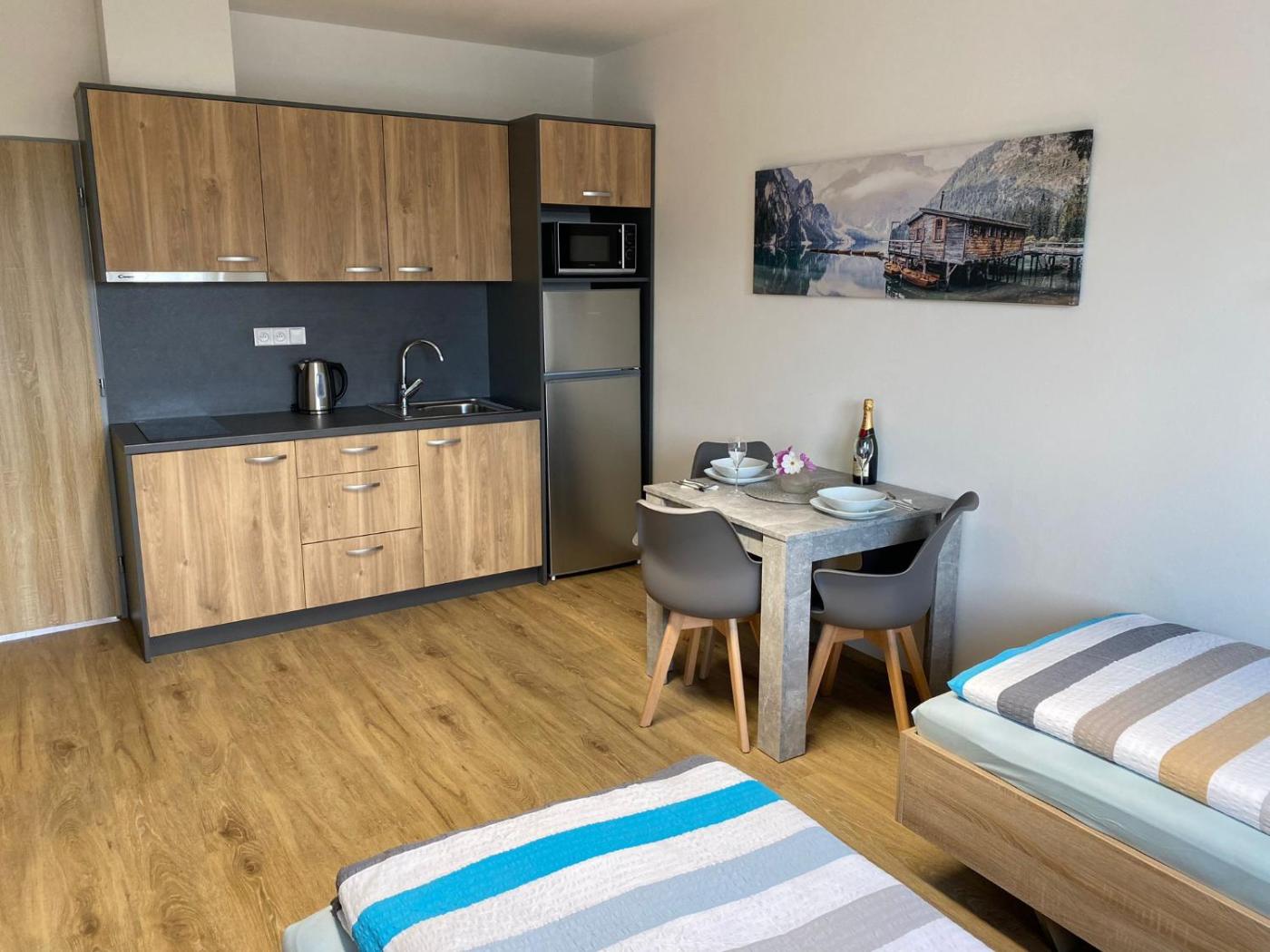 One-Bedroom Apartment. Boasting a private entrance, this apartment includes 1 bedroom and 1 bathroom with a shower. The apartments kitchen is available for cooking and storing food. The apartment offers a seating area, a wardrobe, heating, as well as a flat-screen TV. The unit has 2 beds.