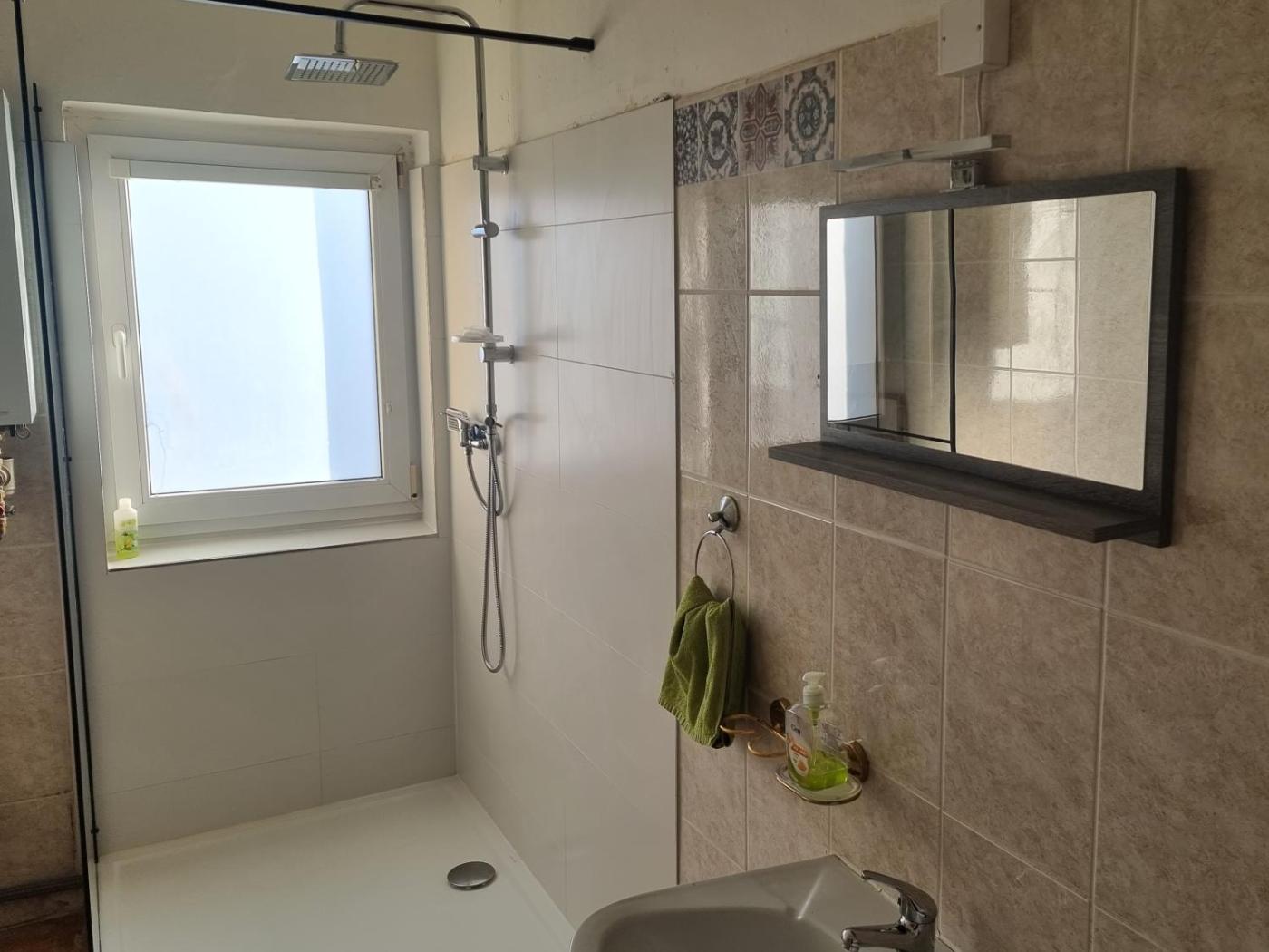 Economy Triple Room with Shared Bathroom. The triple room features a washing machine, a tea and coffee maker, as well as a shared bathroom boasting a walk-in shower and a bath or a shower. Guests can make meals in the kitchenette that features a stovetop, a refrigerator, kitchenware and a microwave. The triple room provides a seating area, a wardrobe, parquet floors, heating and a flat-screen TV. The unit has 2 beds. ;