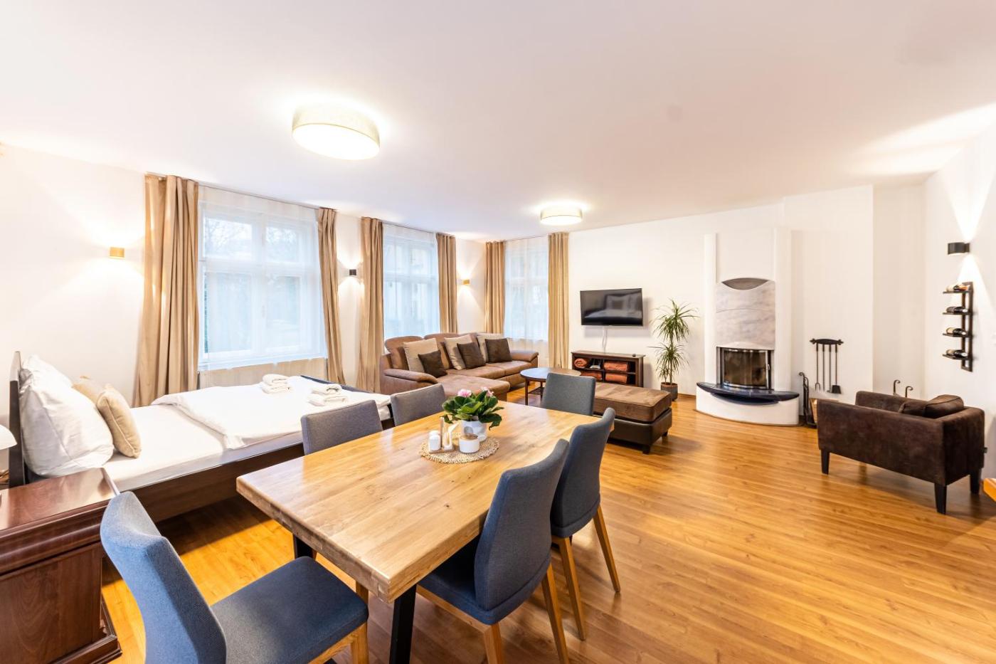 Studio with Fireplace. Guests will have a special experience as this apartment provides a fireplace. Featuring a private entrance, this spacious apartment also is comprised of 2 bedrooms, a seating area and 1 bathroom with a bath and a hairdryer. Meals can be prepared in the kitchen, which is fitted with a stovetop, a refrigerator, a dishwasher and kitchenware. The apartment offers a washing machine, a tea and coffee maker, a dining area, a flat-screen TV with streaming services, as well as garden views. The unit offers 3 beds. ;