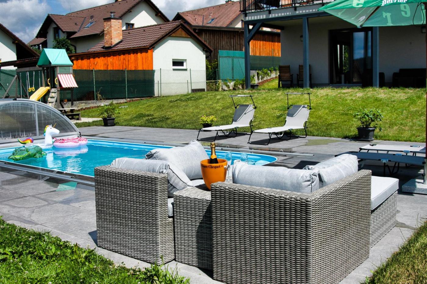 Situated in Frymburk, Apartmánové domy Lipno 1 features accommodation with private pool, free WiFi and free private parking for guests who drive. There is a private entrance at the apartment for the convenience of those who stay. The apartment has family rooms.