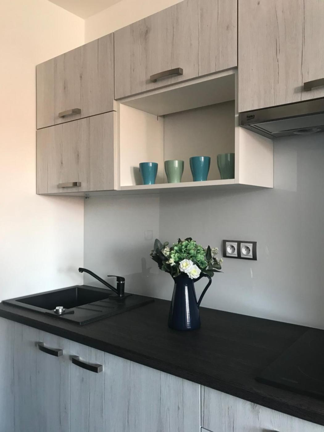 Standard Double Room. The spacious double room features a private bathroom, air conditioning, soundproof walls, as well as a seating area with a flat-screen TV. In the well-equipped kitchenette, guests will find a stovetop, a refrigerator, kitchenware and an electric kettle. The double room is equipped with a TV, a wardrobe, a carpeted floor, as well as heating. The unit offers 2 beds. ;