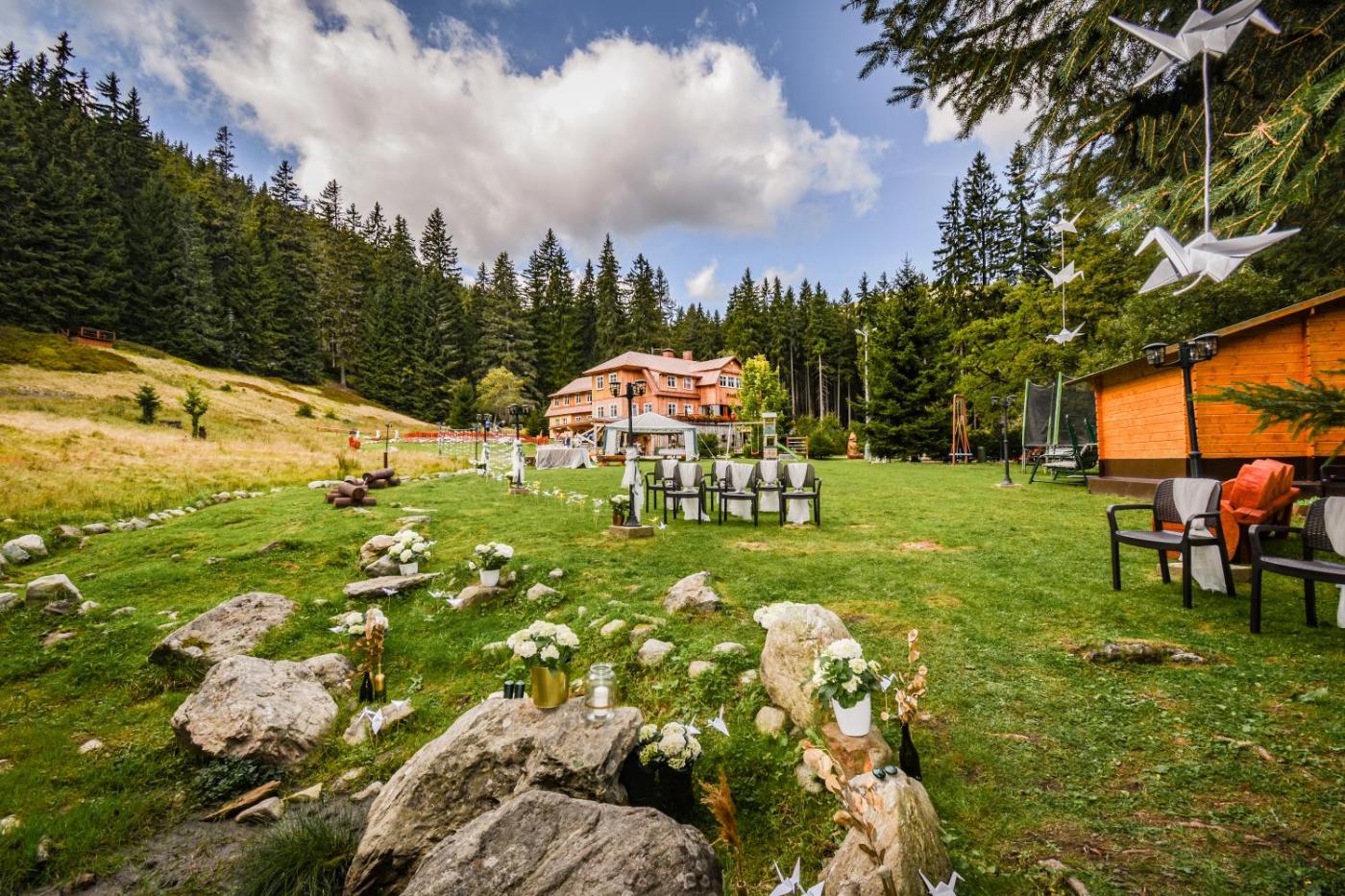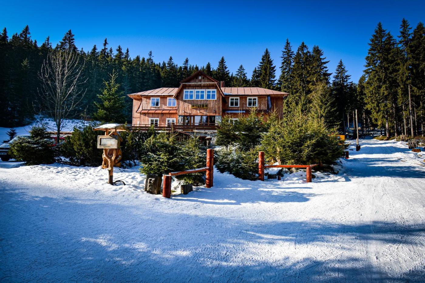 Featuring a garden with a childrens playground, sun terrace and free WiFi, Horská chata Milíře is a guest house in Pec pod Sněžkou. It is situated 19 km from Bus Stop Strážné and offers a tour desk. The guest house has family rooms.