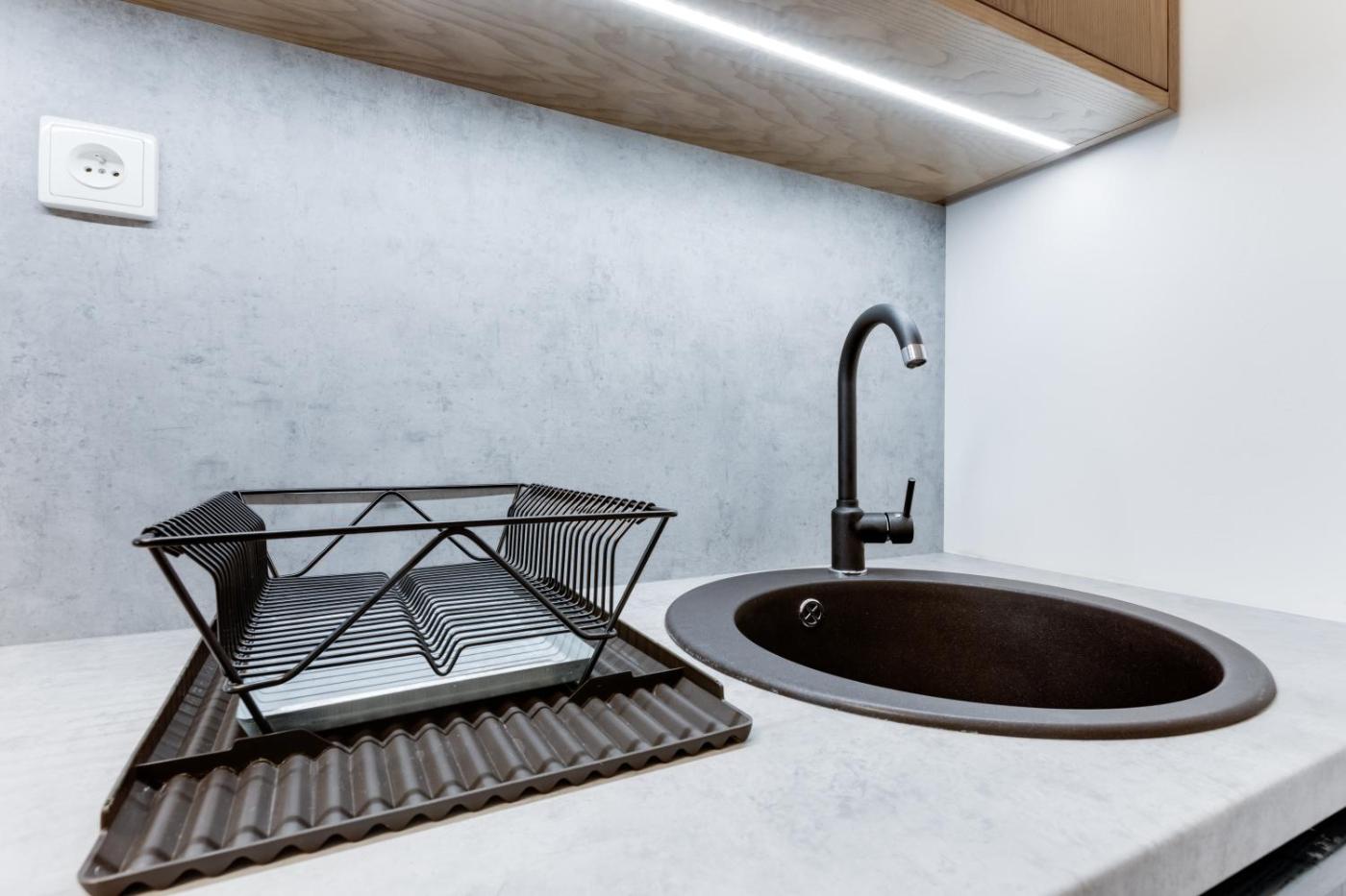 Two-Bedroom Apartment. The apartment consists of 2 bedrooms, a living room, a bathroom, a kitchen, a small balcony overlooking the yard and a small terrace to the street. The main bedroom can accommodate 3 people, the small one is for 1 person, and there is also a big sofa-bed for 2 people in the living room. The kitchen is equipped with a microwave, an electric cooker, a coffeetea maker and a kettle. Breakfast can be served (extra charge).