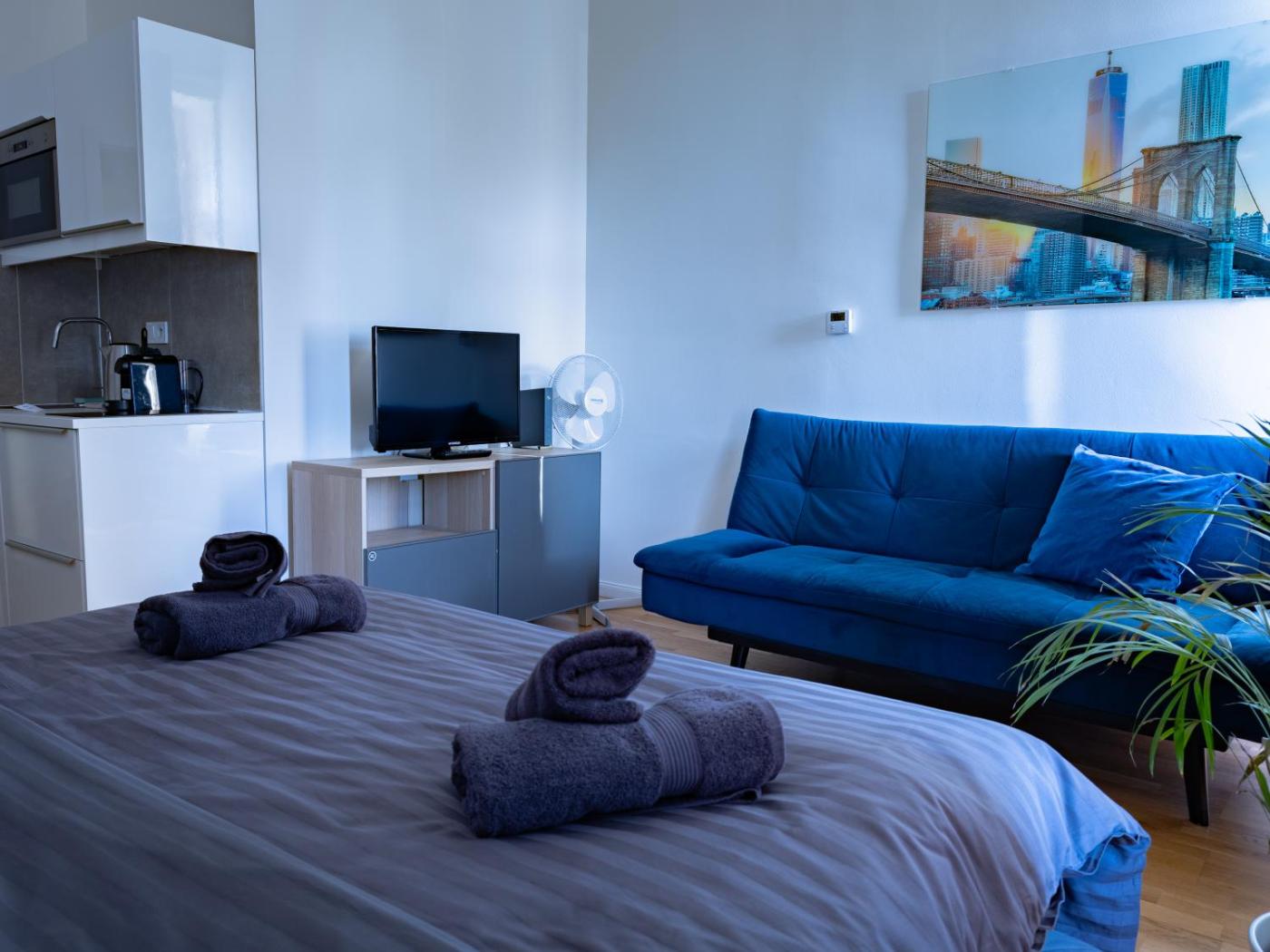 One-Bedroom Apartment. This apartment features 1 living room, 1 separate bedroom and 1 bathroom with a shower. Guests can make meals in the fully equipped kitchen that has a stovetop, a refrigerator and a microwave. The apartment features a washing machine, a tea and coffee maker, a seating area, a flat-screen TV, as well as city views. The unit has 2 beds.