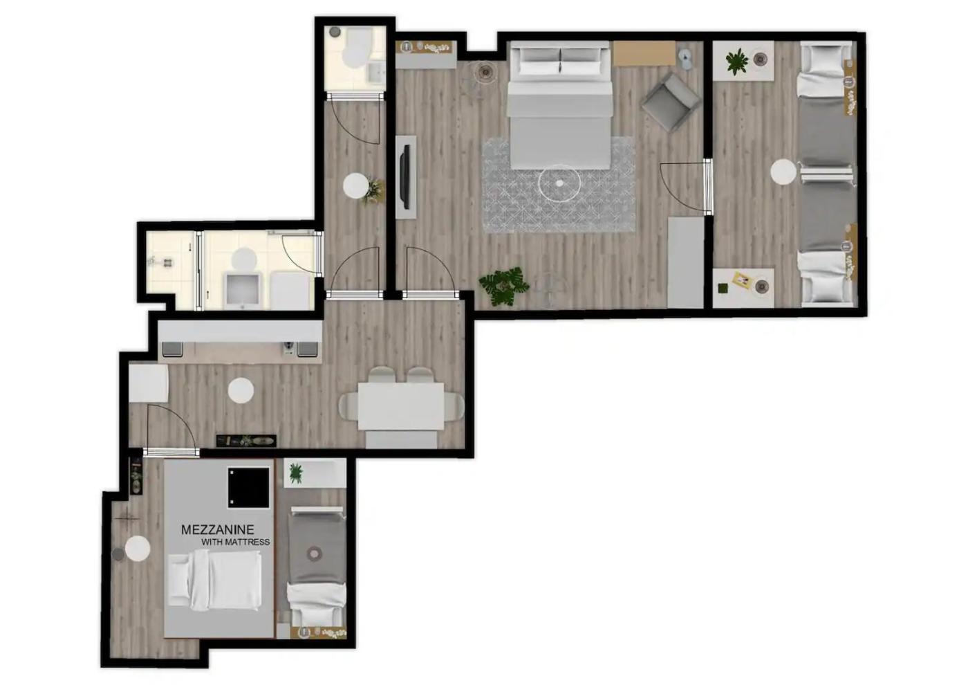 Three-Bedroom Apartment. Guests can make meals in the kitchen that features a stovetop, a refrigerator, an oven and a microwave. The spacious apartment features a washing machine, a tea and coffee maker, a wardrobe, tumble dryer, as well as a flat-screen TV. The unit has 4 beds and 1 futon.