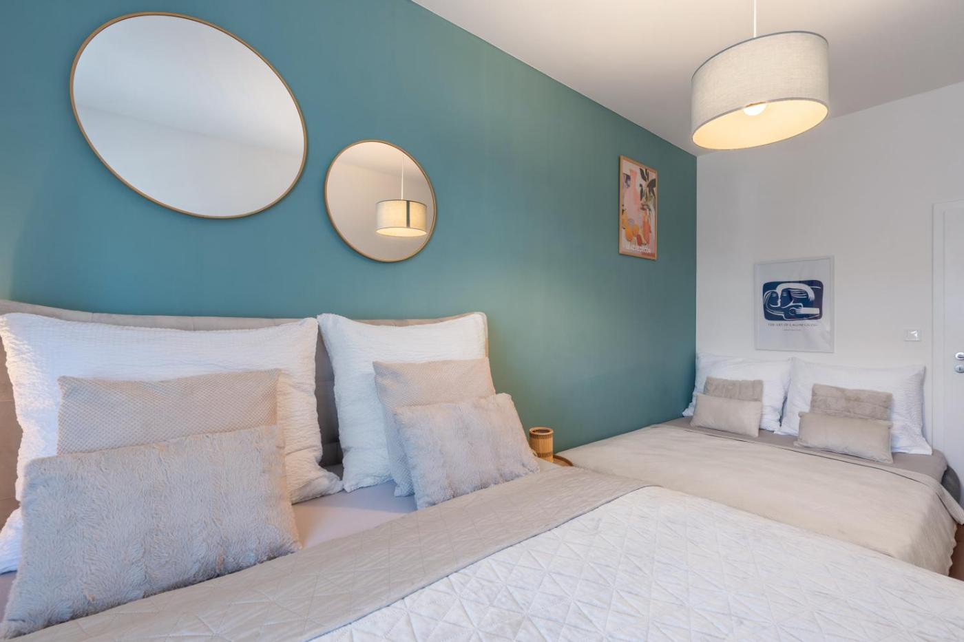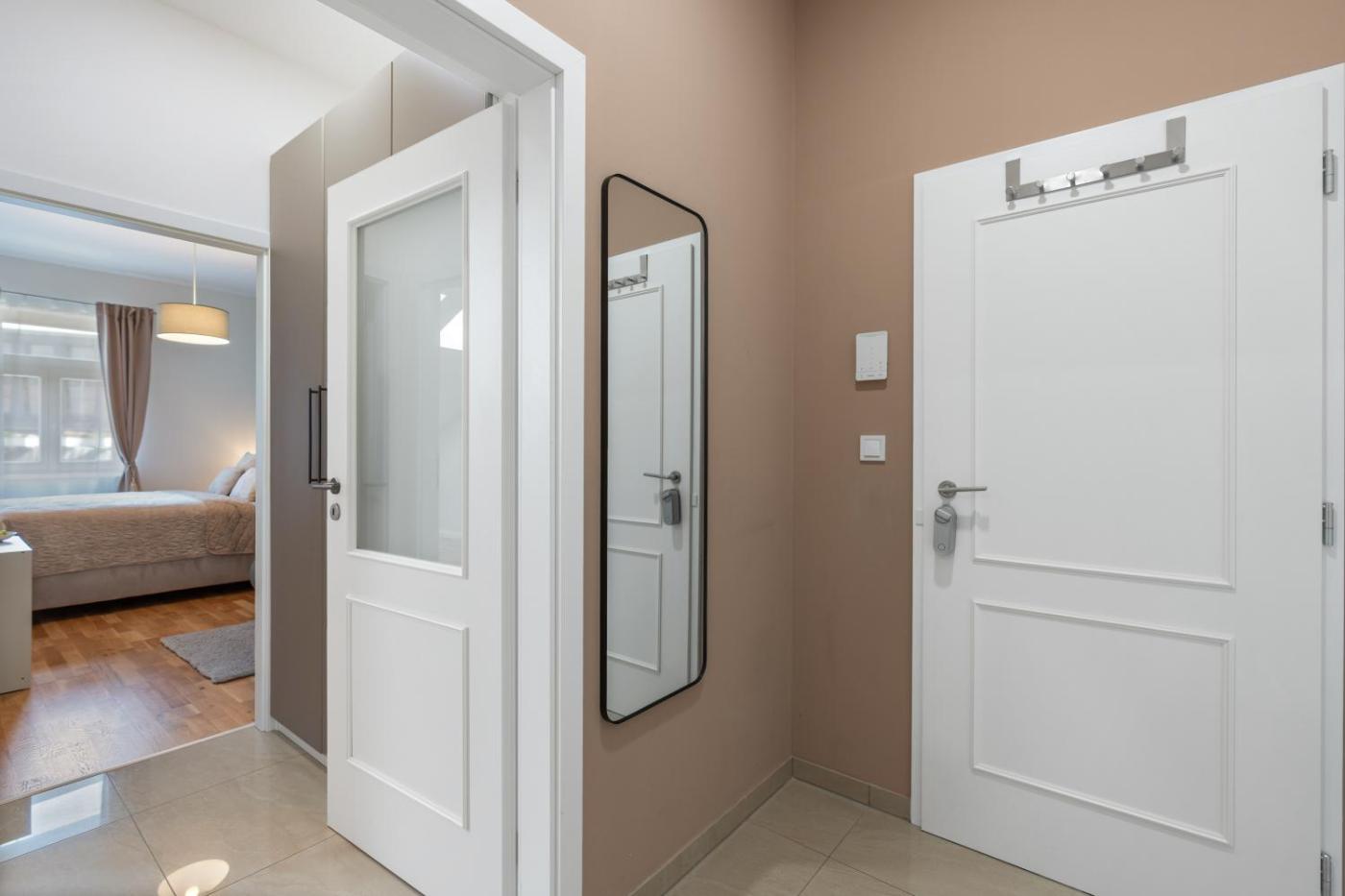 Two-Bedroom Apartment with City View. This apartment includes 1 living room, 2 separate bedrooms and 1 bathroom with a shower and free toiletries. In the fully equipped kitchen, guests will find a stovetop, a refrigerator, kitchenware and a microwave. The air-conditioned apartment offers a flat-screen TV with streaming services, a washing machine, soundproof walls, a tea and coffee maker as well as city views. The unit has 3 beds.