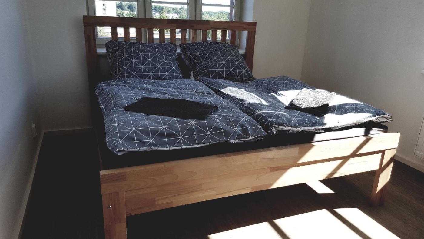 Three-Bedroom Apartment. This spacious apartment comes with 1 living room, 3 separate bedrooms and 1 bathroom with a shower. Guests can make meals in the kitchen that features a stovetop, a refrigerator, kitchenware and an electric kettle. The apartment features a seating area, a wardrobe, heating, a flat-screen TV, as well as city views. The unit has 8 beds.