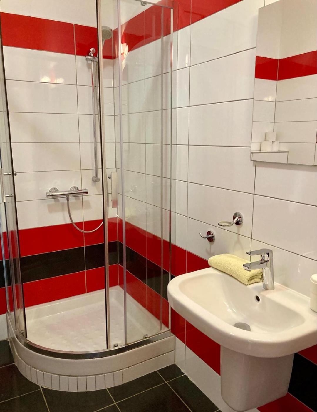 Triple Room with Bathroom. Providing free toiletries, this triple room includes a private bathroom with a shower. The triple room provides a flat-screen TV, a tea and coffee maker, a wardrobe, heating as well as garden views. The unit offers 2 beds. ;