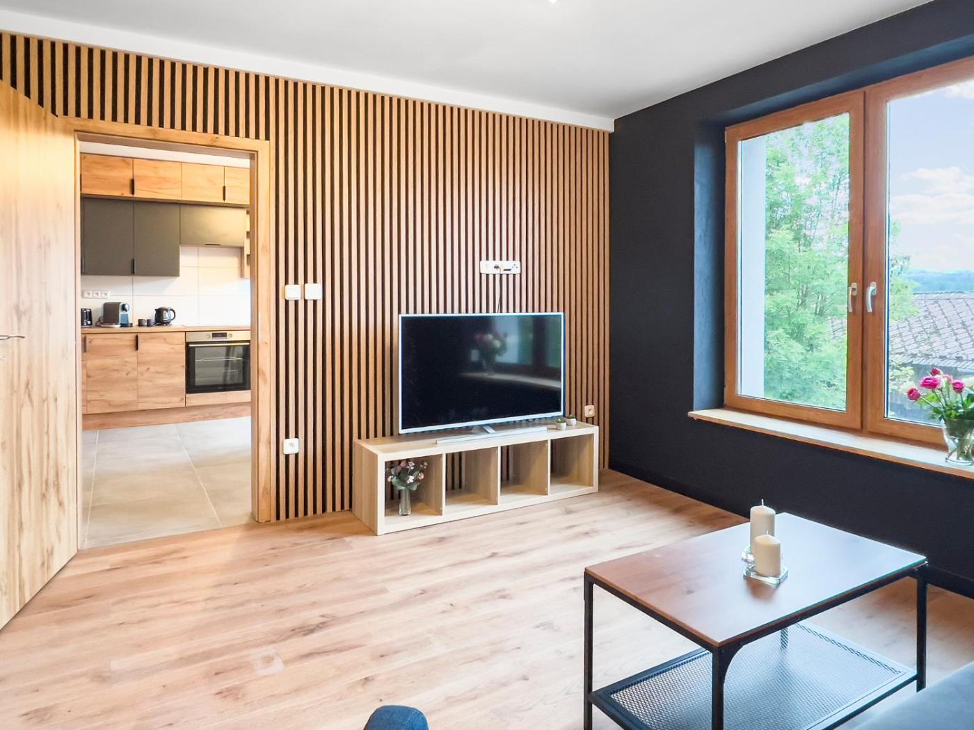Apartmány Vlastiboř in Vlastiboř offers a sun terrace and free WiFi. The ground-floor unit features a private bathroom, tea and coffee maker, and a dining area.